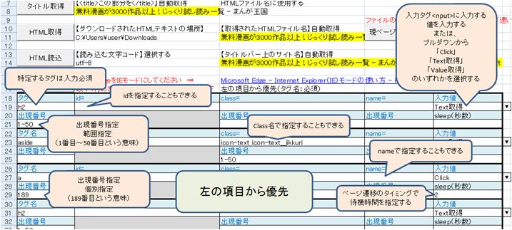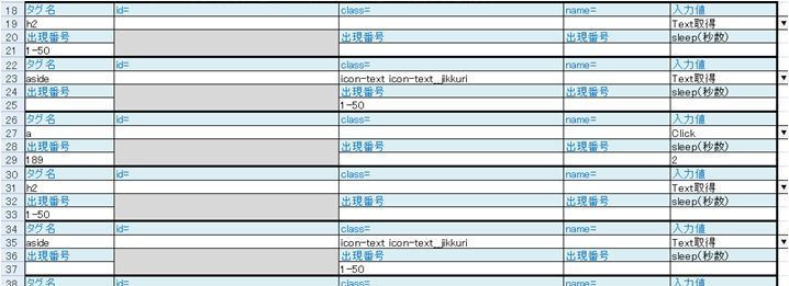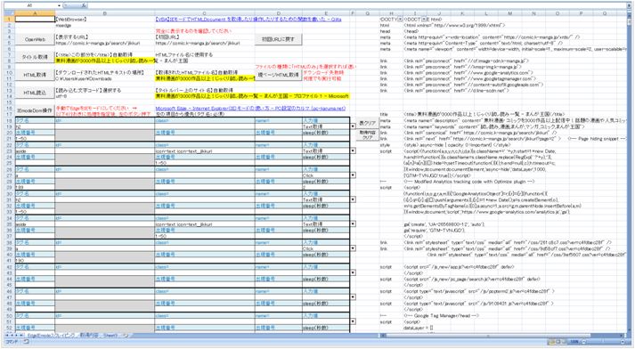 | 特徴 | 固定のサイトで固定の情報ではなく、Excelにあらかじめ指定したシナリオ・パラメータ情報によって、 自動入力自動取得Excelアプリが汎用的に動作する |